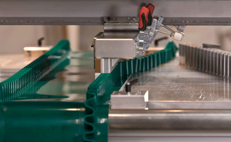 Nuestro taller dispone de un amplio parque de maquinaria y experiencia para manipular bandas a medida y según los requerimientos de la aplicación (perfiles, guías, bordes de contención, etc.) con la mayor calidad y perfecto acabado.